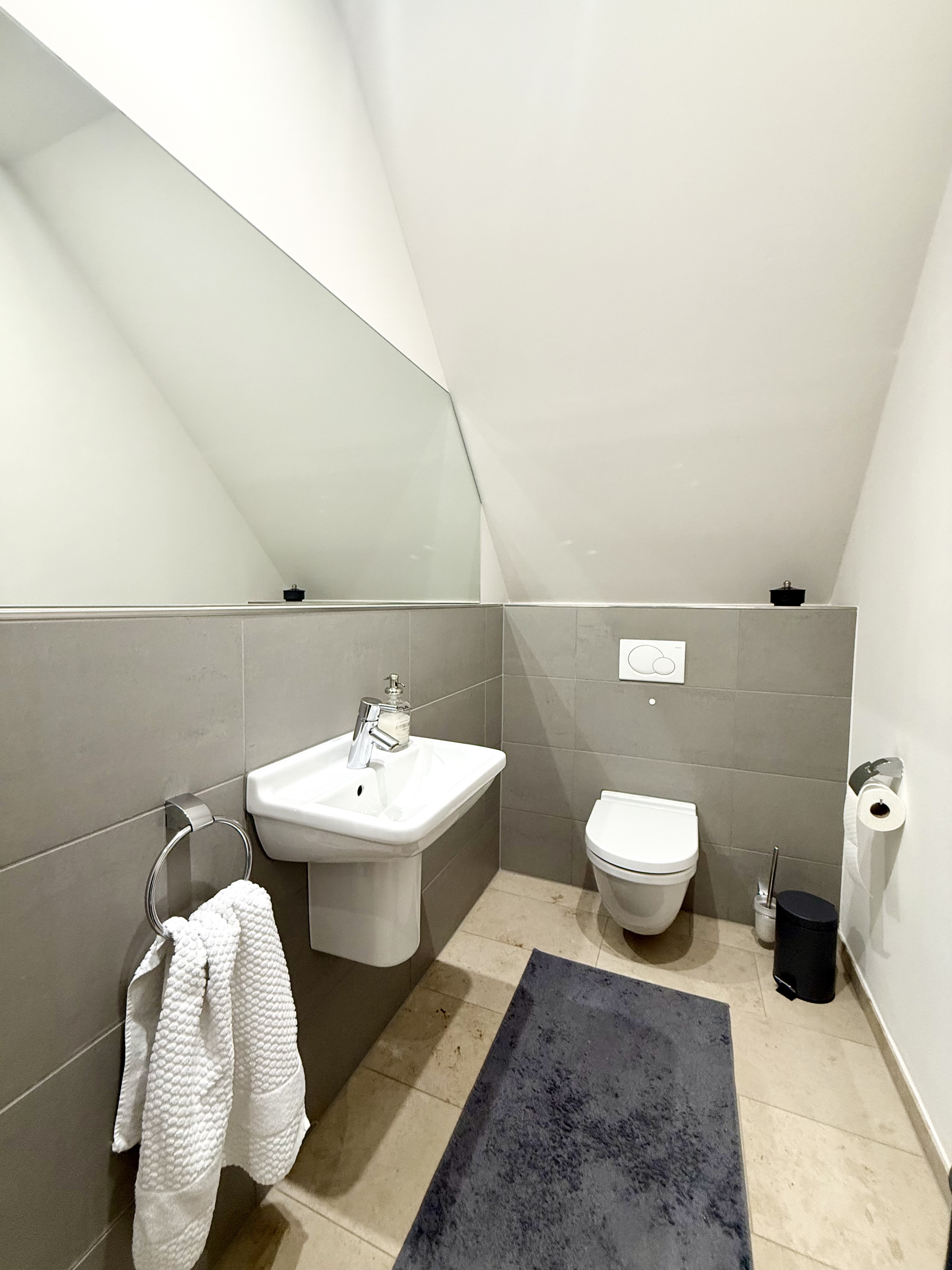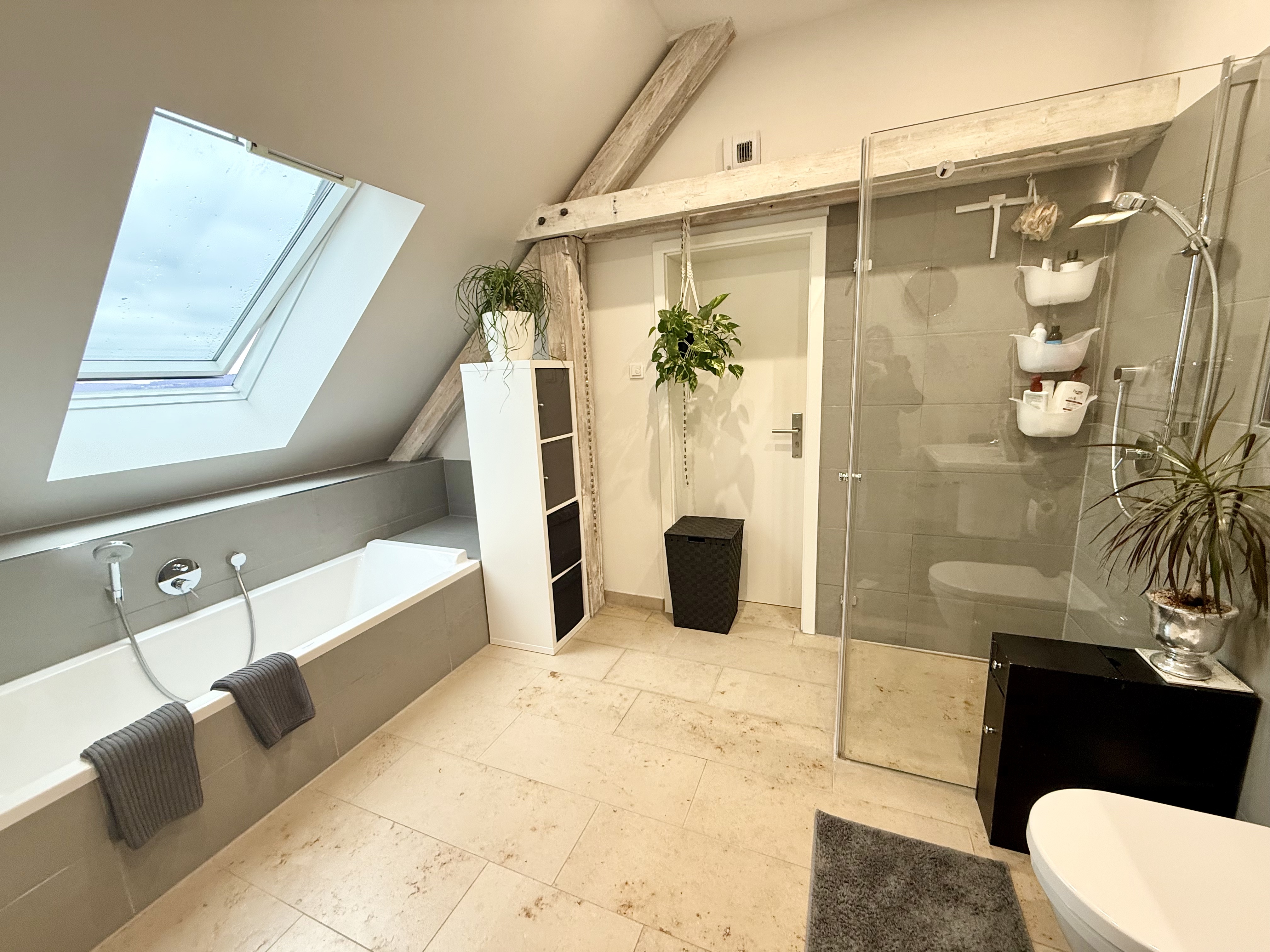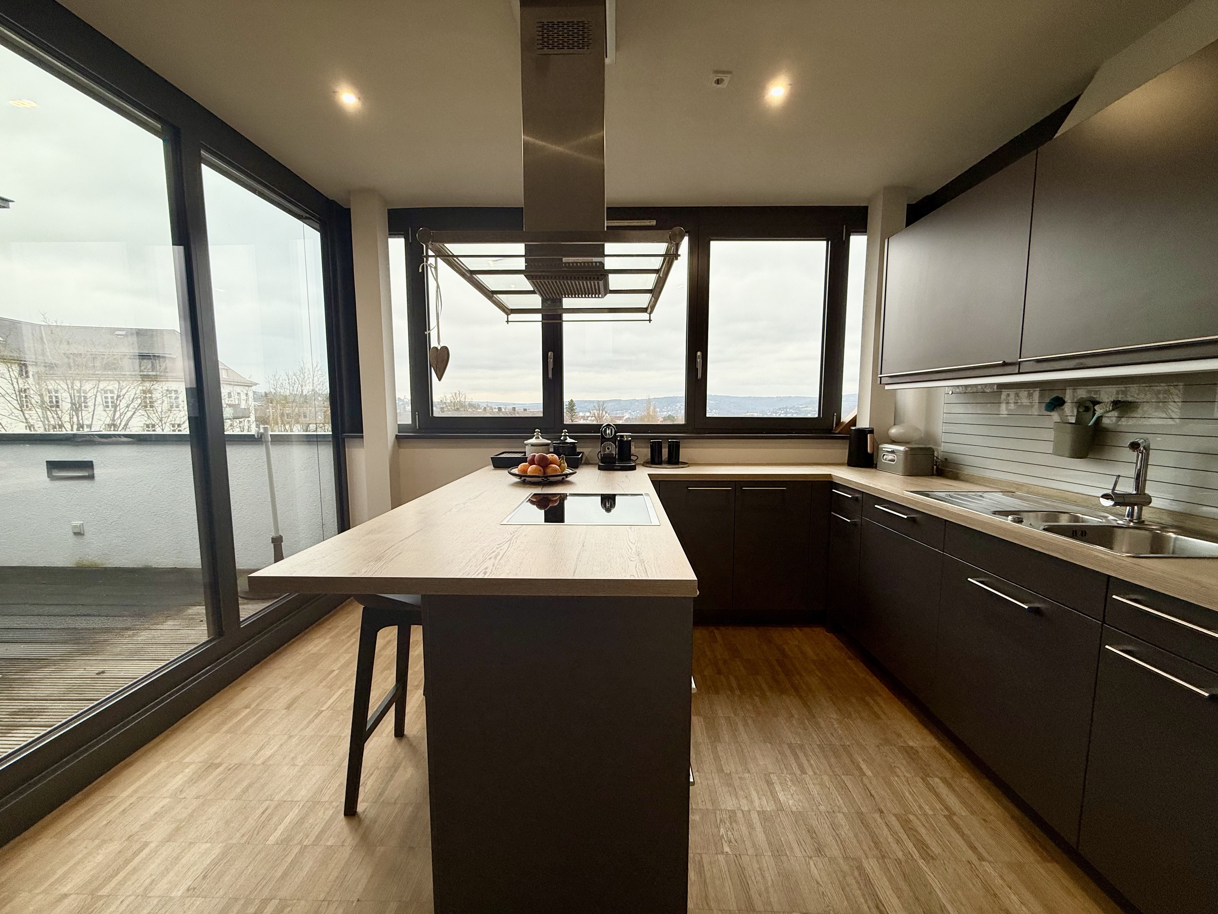 Die Wohnung erstreckt sich über zwei Ebenen im Dachgeschoss. Im ersten Dachgeschoss befindet sich ein offen gestalteter Eingangsbereich, von dem aus sowohl der großzügige Hauswirtschaftsraum mit Waschmaschinenanschluss als auch das innenliegende Gäste-WC erreichbar sind. Herzstück dieser Ebene ist der lichtdurchflutete, offen geschnittene Wohn-, Ess- und Küchenbereich mit großer Fensterfront und direktem Zugang zur traumhaften Süd-West-Dachloggia mit wunderschönem Blick über Würzburg. Eine Wendeltreppe führt in das zweite Dachgeschoss. Dort erwartet Sie ein offener Schlaf- bzw. Ankleidebereich sowie ein Tageslichtbadezimmer, das mit Badewanne und Dusche ausgestattet ist.