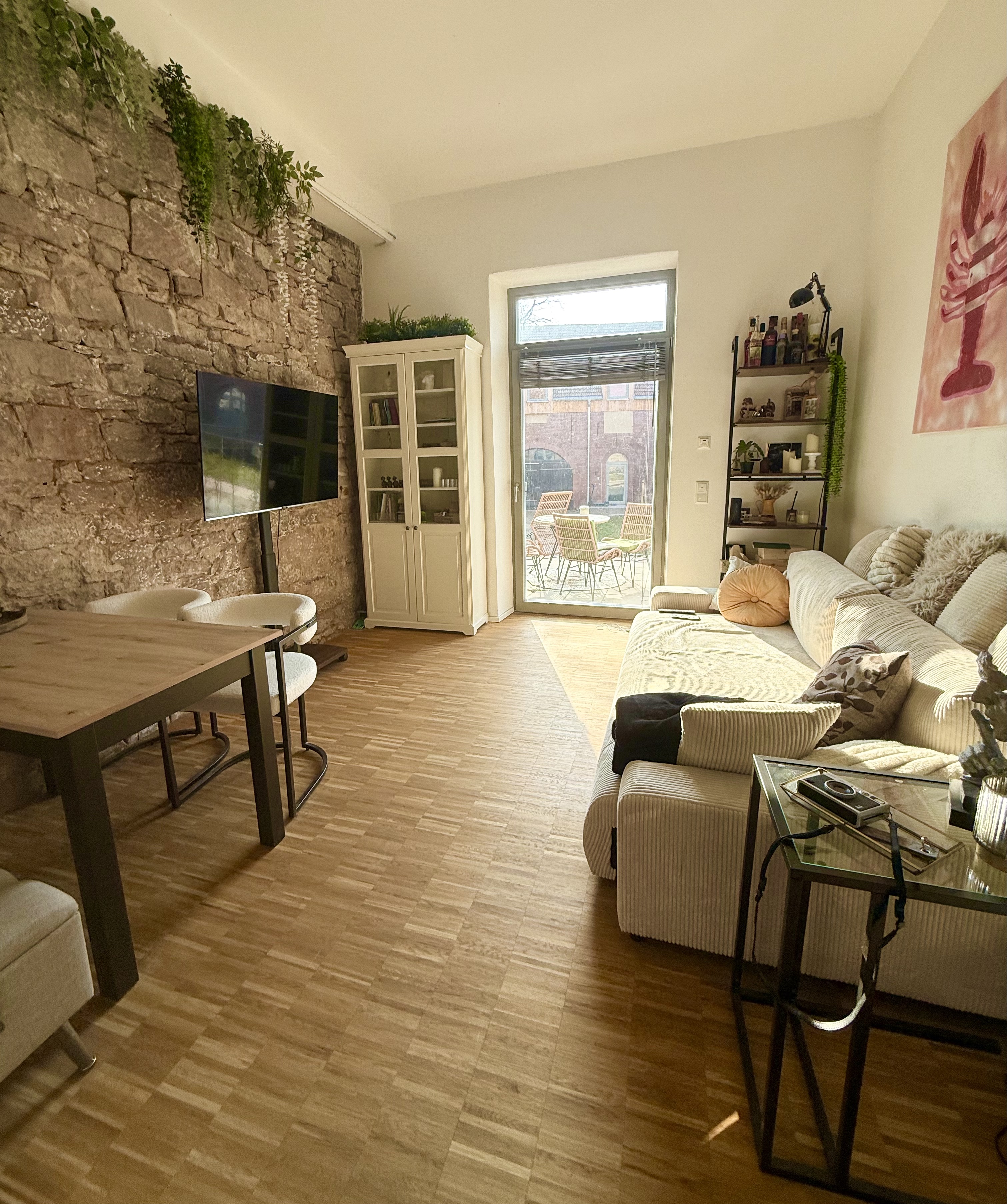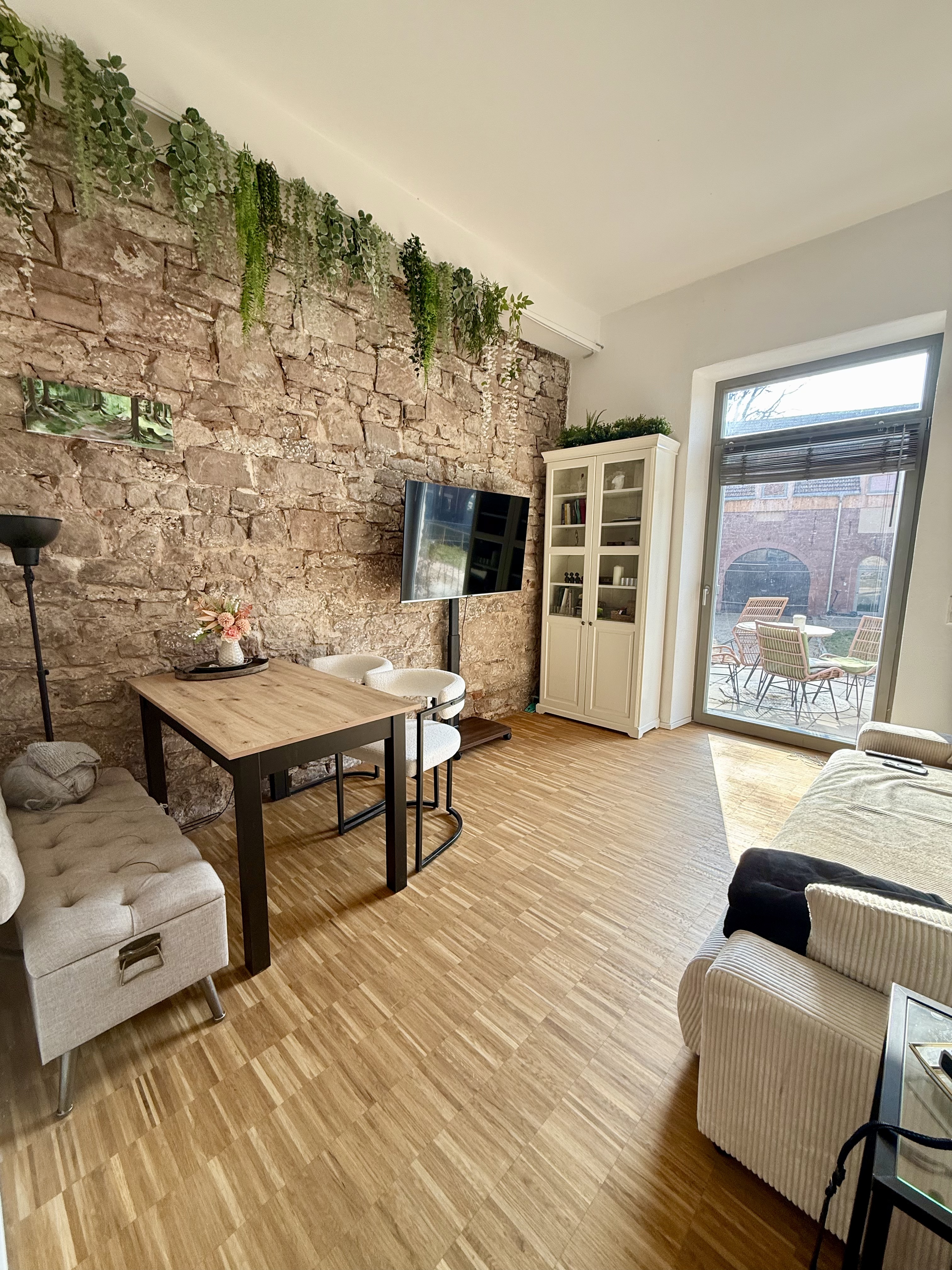 Die Wohnung verfügt über einen offen gestalteten Eingangsbereich. Von diesem gelangen Sie in den modernen Wohn-Ess-Küchenbereich mit Terrassenzugang. Die beiden Terrassen mit Grünfläche laden zum gemütlichen Verweilen ein. Zusätzlich gibt es einen an die Küche angrenzenden Abstellraum mit Waschmaschinenanschluss. Im OG befindet sich das gemütliche Schlafzimmer mit Sichtbalken. Das Badezimmer mit Dusche ist bereits mit Accessoires wie Spiegel und Handtuchhalter ausgestattet. Der Spitzboden mit Einschubtreppe rundet den einmaligen Wohntraum ab!